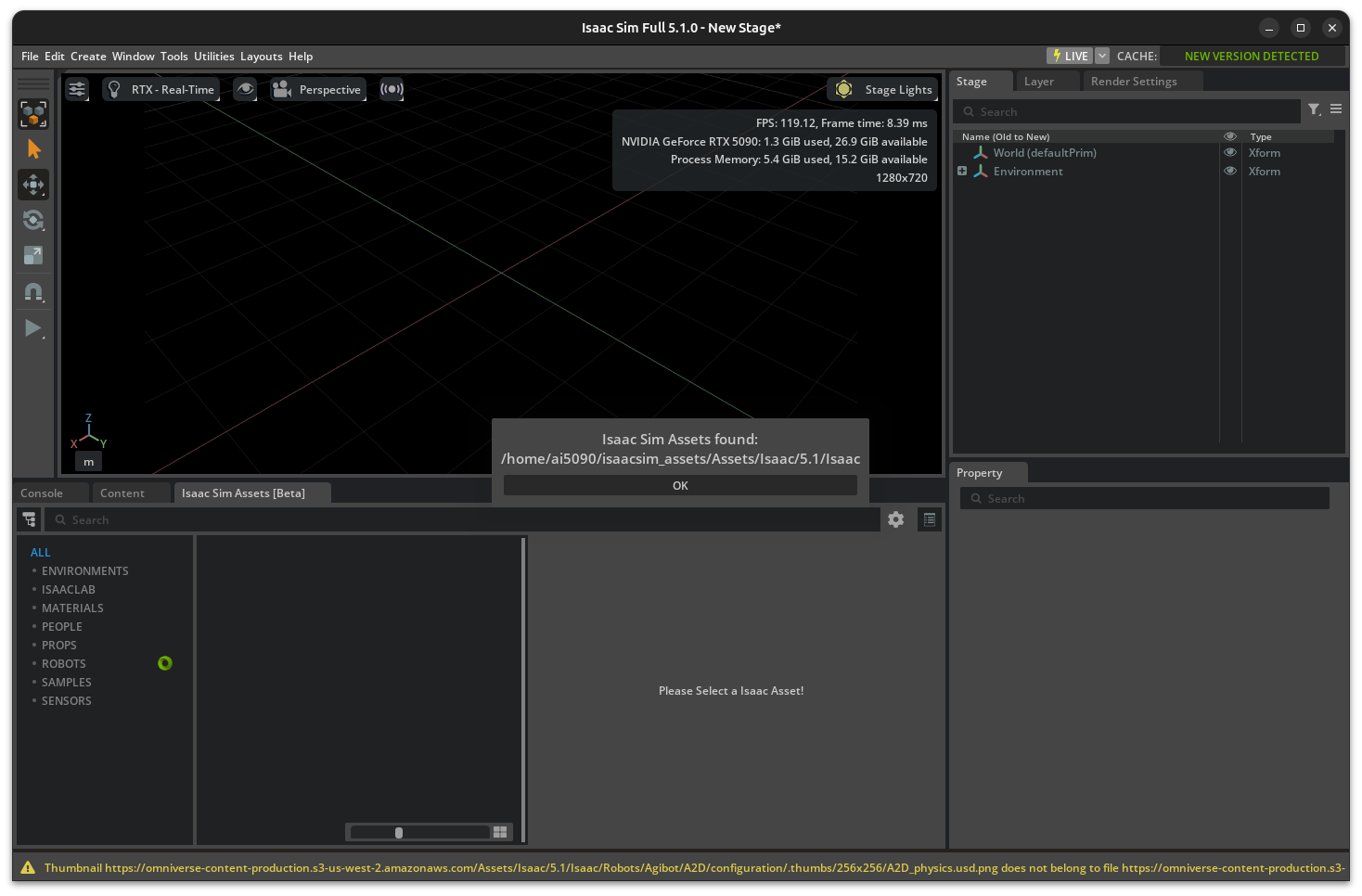 | 에셋 루트 경로 | /home/user/isaacsim_assets/Assets/Isaac/5.1 |