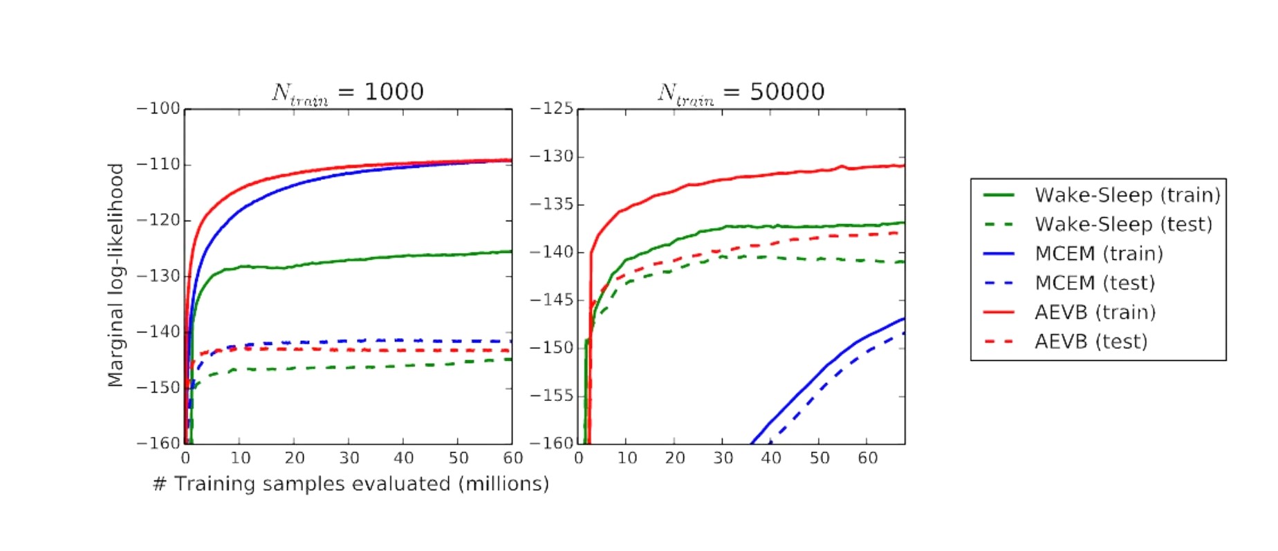 ์ ์ฌ์ฉํ์ฌ ๋ฒ ์ด์ค๋ผ์ธ์ผ๋ก wake-sleep ์๊ณ ๋ฆฌ์ฆ๊ณผ ์ฑ๋ฅ์ ๋น๊ตํ์ต๋๋ค.