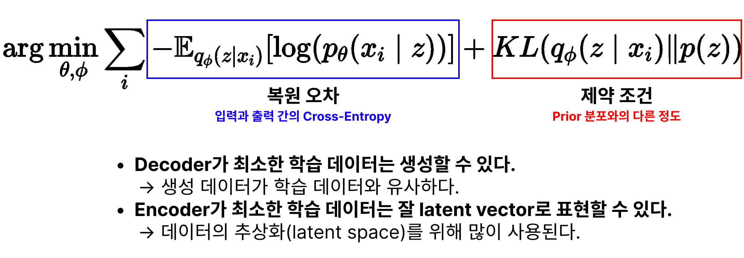 ๋จผ์ Reconstructino Error์ ํ์ต ๋ฐ์ดํฐ์ธ x๊ฐ ๋ค์ด๊ฐ์ ๋ x๊ฐ ๋์ค๋๋ก ํ๋ ๋ณต์(Reconstruction)์ ํ๋๋ก ํ๋ term์ด๋ฉฐ, Regularization์ prior distribution์ธ q์ ํํ๋ฅผ ์ ํํด์ฃผ๋ ์ญํ ์ ํ๋ term์