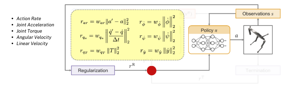 ์ด์ ์ AMP์์์ Style reward์ ์ญํ ์ WASABI์์๋ Regularization Reward๊ฐ ๋์ ํ๋ค๊ณ ๋ณผ ์ ์์ต๋๋ค. ์ด reward๋ task-dependentํ์ง ์์ task-agnosticํ term๋ค๋ก ์ด๋ฃจ์ด์ ธ ์์ด์ backflip ๋ชจ์ ์ ํ๋ locomotion ๋ชจ์ ์ ํ๋ ๋ก๋ด์ ์์ฐ์ค๋ฝ๊ณ ์๋์ง ํจ์จ์ ์ธ ๋ชจ์ ์ ์ํด ๋ถ๊ฐ์ ์ผ๋ก ๋ํด์ง๋ reward๋ผ๊ณ ๋ณผ ์ ์์ต๋๋ค.