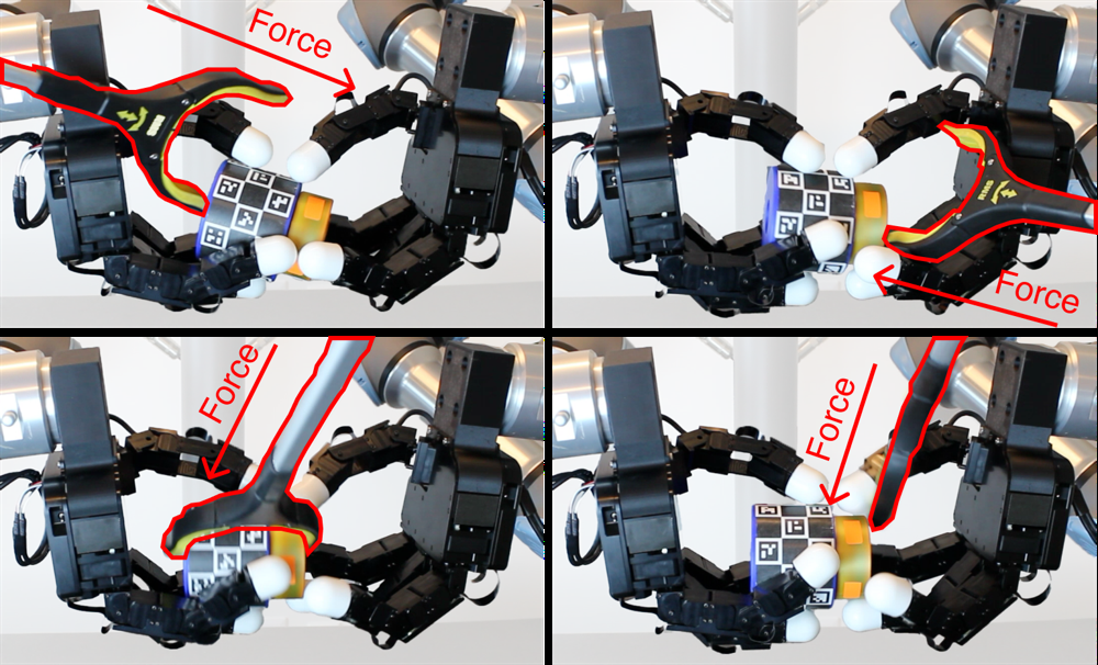 ์ค์ ํ๊ฒฝ ์คํ์์๋ ์ ์ํ๋ ์ ์ฑ ์ด ๋ชจ๋ ๊ธฐ์ค์ (์คํ ๋ฃจํ ๋ฆฌํ๋ ์ด, ๋น์ ์์, ๋น๋์นญ ํ๋ จ ์์, ๋ํ ์ ์ฑ ๋คํธ์ํฌ)์ ๋ฅ๊ฐํ๋ฉฐ, ์์ ์ ์ธ ํ์ง์ ํจ๊ณผ์ ์ธ ๋๊ป ๋นํ๊ธฐ ์ฑ๋ฅ์ ๋ณด์ฌ์ฃผ์๋ค. ํนํ, ์คํ ๋ฃจํ ์ ์ฑ ์ ๋ฎ์ ์ฑ๋ฅ์ ์ด ๊ณผ์ ๊ฐ ๋ฌผ์ฒด ์ํ์ ๋ฐ๋ผ ๋งค์ฐ ์ ๋ฐํ ์ก์ ์ ์๊ตฌํจ์ ์์ฌํ๋ค. ๋ํ ์ ์ฑ ์ด ์ค์ ํ๊ฒฝ์ผ๋ก ์ ์ด๋์ง ๋ชปํ ๊ฒ์ ๊ณผ์ ํฉ(overfitting) ๊ฐ๋ฅ์ฑ์ ๋ณด์ฌ์ฃผ๋ฉฐ, ์ ์ด์ด ๋น๋ฒํ ์์ ์ ์ฌ-ํฌ-๋ฆฌ์ผ ์ ์ด๋ฅผ ์ํด์๋ ์ ์ฑ ๋คํธ์ํฌ ํฌ๊ธฐ ์ ์ด๊ฐ ์ค์ํจ์ ์์ฌํ๋ค. ๋ํ, ์ ์ฑ ์ ์ธ๋ถ ํ์ ๋ํ ๊ฐ์ธ์ฑ์ ๋ณด์ฌ์ฃผ์์ผ๋ฉฐ, ํ๋ จ๋์ง ์์ โ๋๊ป ์ ๊ฑฐ(lid-removal)โ ์์ ์ ๋ํด์๋ ์๋ก์ด ๊ฐ์ ์ฉ ๋ฌผ์ฒด์ ๋ํ ์ผ๋ฐํ ๋ฅ๋ ฅ์ ์ ์ฆํ๋ค.