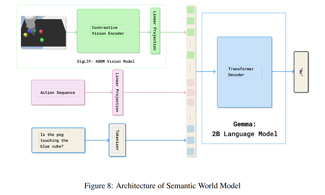 ์คํธ๋ฅผ ๋์์ ์ฒ๋ฆฌํ ์ ์์ต๋๋ค. ์ฌ๊ธฐ์ ํ๋(action) ์๋ฒ ๋ฉ์ ์ถ๊ฐํ์ฌ ๋ชจ๋ธ์ ํ์ฅํฉ๋๋ค. ์ฆ, ์ด๋ฏธ์ง ๊ด์ธก์ SigLIP ์ธ์ฝ๋๋ก ์ฒ๋ฆฌํ๊ณ , ํ๋ ์ํ์ค๋ ์๋ก์ด ํฌ์ ํ๋ ฌ(projection matrix)์ ํตํด ์ธ์ด ๋ชจ๋ธ์ ํ ํฐ ๊ณต๊ฐ์ผ๋ก ๋งตํํฉ๋๋ค. ์ง๋ฌธ(question)์ ๊ธฐ์กด VLM์ฒ๋ผ ํ ํฌ๋์ด์ง(tokenizing)ํ์ฌ ์ธ์ด ๋ชจ๋ธ๋ก ์